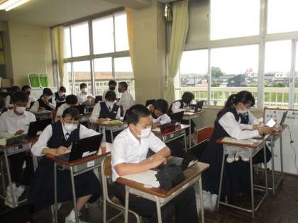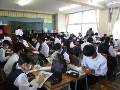 (写真 中:2年2組 調べた内容をワークシートに記入)