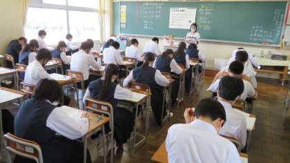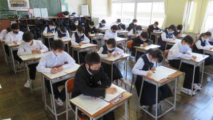 1学期・中間評価・1日目 公開日 2021/05/24 更新日 2021/05/24 今日の興南中 5月24日(月) 1限 今日から、「1学期・中間評価」が始まりました。 (写真 上:1年1組 英語のようす) (写真 中:2年1組 国語のようす) (写真 下:3年1組 理科のようす) もう1日、テスト勉強、頑張りましょう!