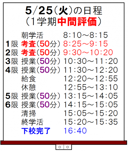 明日は、「1学期・中間評価・2日目」です。