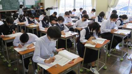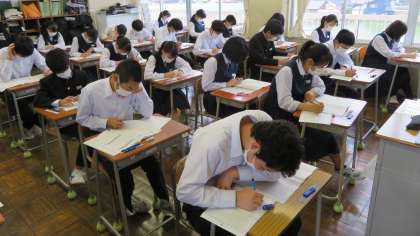3年・「全国学力・学習状況調査」 公開日 2021/05/27 更新日 2021/05/27 3年生 5月27日(木) 1限 国語 3年生は、1〜3限、「全国学力・学習状況調査」を受けました。 (1限:国語、2限:数学、3限:質問紙調査) (写真 上:3年1組 中:3年2組 下:3年3組) 中間評価が終わって、すぐだったので、ちょっとたいへんでしたね。