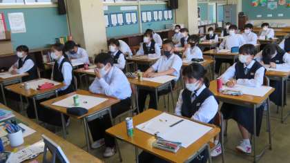 1年3組の美術は、「空き缶を描こう」に取り組んでいます。