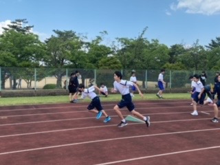 5月最後の休日部活動・陸上競技部 公開日 2021/05/29 更新日 2021/05/29 今日の興南中 5月29日(土) 11:00 陸上競技部は、大沢野陸上競技場で練習しました。 (写真:1年生のリレーのバトン練習)