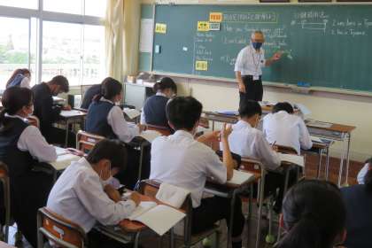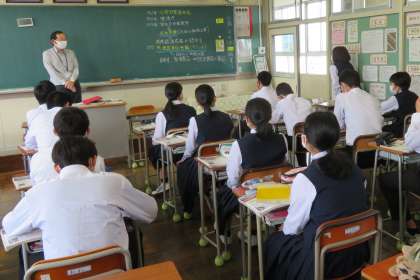 3年・授業風景 公開日 2021/06/02 更新日 2021/06/02 3年生 6月2日(水) 1限 3年生は、今はまさに「学習と部活動の両立」を目指しています。 (写真 上:3年1組 理科の授業) (写真 中:3年2組 社会の授業) (写真 下:3年3組 英語の授業)