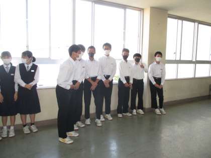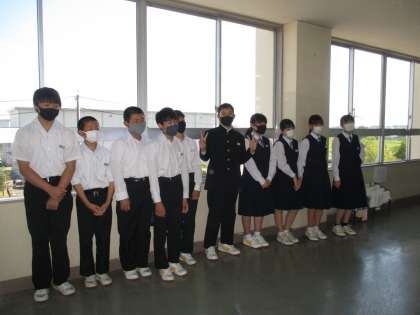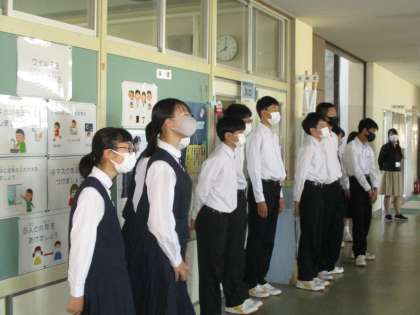 2年・朝ボラ 公開日 2021/06/03 更新日 2021/06/03 2年生 6月3日(木) 今週の朝ボラは、2年3組が担当しています。 校舎内の3カ所に分かれ、挨拶を大きな声でしています。 明るく元気な挨拶は、1日のスタートを活発にしてくれます。 (写真 上:生徒玄関 中:西階段3階 下:中央階段3階) ※この写真は5月31日(月)に撮影