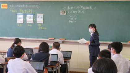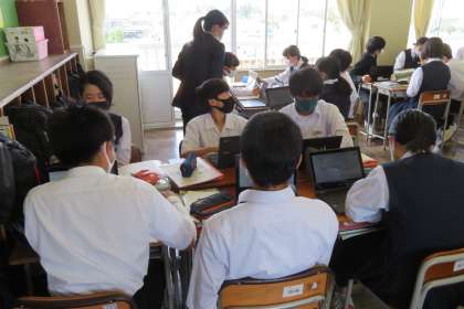 2年・家庭科・「洗剤のしくみ」 公開日 2021/06/03 更新日 2021/06/03 2年生 6月3日(木) 1限 2年2組の家庭科は、「洗剤が汚れを落とすしくみを知ろう」という学習課題に取り組んでいます。 洗剤の主成分や界面活性剤について、クロームブックを活用して調べています。 クロームブックが大活躍です!