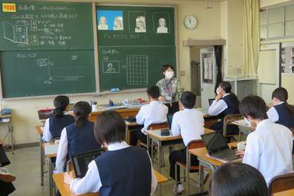 3年2組の美術は、「〜今を生きるあなたへ〜」をテーマに自画像に取り組んでいます。