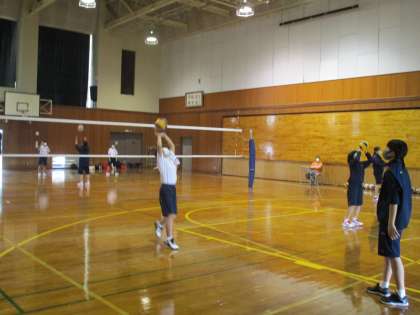 6月最初の休日部活動・その4 公開日 2021/06/05 更新日 2021/06/05 今日の興南中 6月5日(土) 13:00 バレーボール部の2,3年生は練習試合のため、1年生が体育館で練習しました。 今まで、先輩から教わったことを思い出しながら、真剣に取り組んでいました。