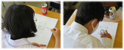 1年・美術・「空き缶を描こう」 公開日 2021/06/07 更新日 2021/06/07 1年生 6月7日(月) 4限 1年2組の美術は、「空き缶を描こう」に取り組んでいます。 曲面の立体感、遠近感の表現に苦労しているようです!