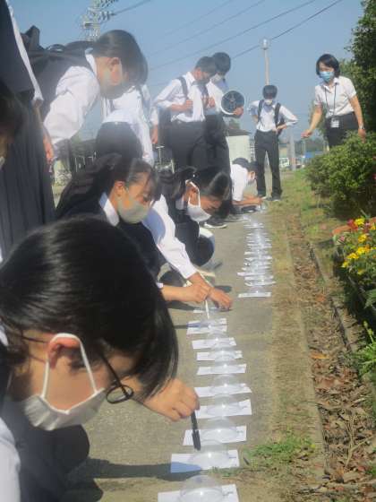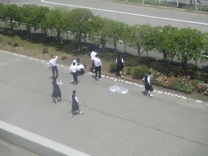 3年・理科・太陽の日周運動 公開日 2021/06/10 更新日 2021/06/10 3年生 6月10日(木) 11:00 3年2組と3年3組が、理科の「太陽の日周運動」を観察しています。 休み時間ごとに、生徒玄関前で、観察を行っています。