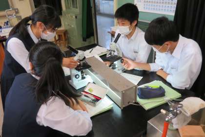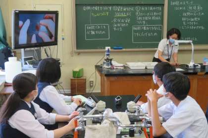 3年1組の理科は、科学室で、タマネギの根の先端の体細胞分裂の観察をしました。
