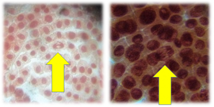 (写真 中:矢印の先にあるのが、細胞分裂が行われている細胞)