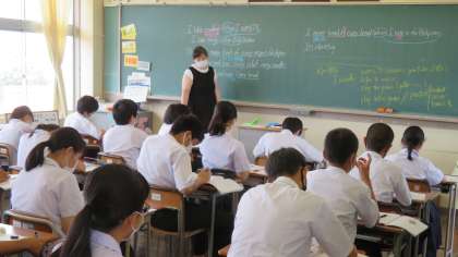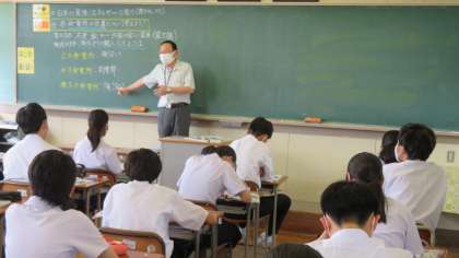 ちょっと風が強く、蒸し暑くなりそうな天気ですが、授業に真剣に取り組んでいます。