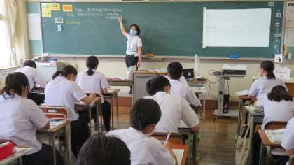 ちょっと風が強く、蒸し暑くなりそうな天気ですが、授業に真剣に取り組んでいます。
