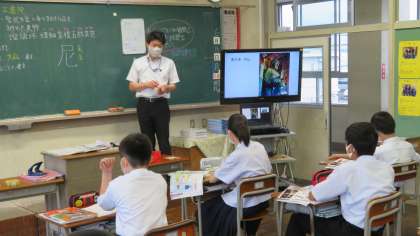 (写真 中:1年2組 理科の授業)
