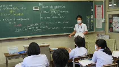 (写真 下:1年3組 数学の授業)