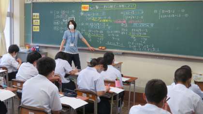 (写真 上:2年1組 数学の授業)