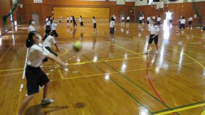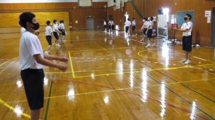 2年・保体・バレーボール 公開日 2021/06/15 更新日 2021/06/15 2年生 6月15日(火) 3限 2年1組の保体は、体育館で、バレーボールをしていました。 今日は、アンダーハンドパスの練習をしていました。 バレーボールはレシーブが基本で重要なので、繰り返し練習して体得したいですね!
