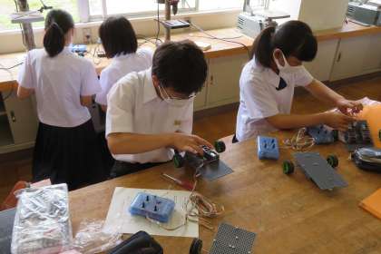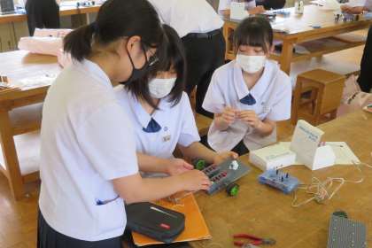 2年・技術・ロボット製作 公開日 2021/06/15 更新日 2021/06/15 2年生 6月15日(火) 3限 2年2組の技術は、ロボットづくりです。 駆動部分が完成し始めています。 どんなアイディアを盛り込むことができるか楽しみですね!