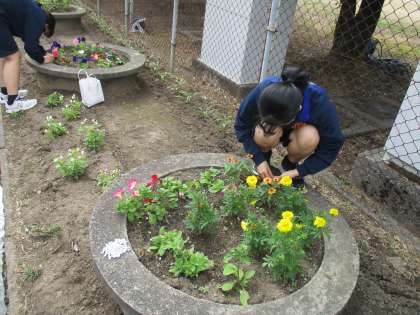 放課後、美化実践部は、フラワーロードの花壇に肥料をやりました。