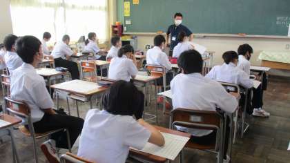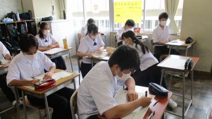 1年生は、28日(月)から始まる期末評価に向けて、範囲表と計画表を配布しました。