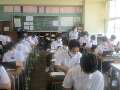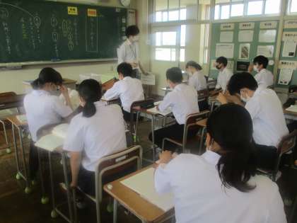 3年・授業風景 公開日 2021/06/17 更新日 2021/06/17 3年生 6月17日(木) 4限 明日から「市総合選手権大会」が始まるので、今週最後の授業になり、授業の受け方にも熱が入ります。 (写真 上:3年1組 数学の授業) (写真 中:3年2組 理科の授業) (写真 下:3年3組 国語の授業)