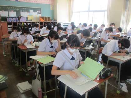 3年生は「総合的な学習の時間」に行ってきた「平和学習」のまとめの作業を始めました。