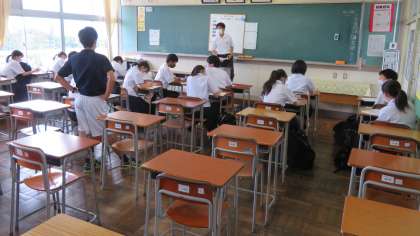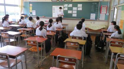 (写真 上:Aグループ(2年3組) 下:Bグループ(2年2組))