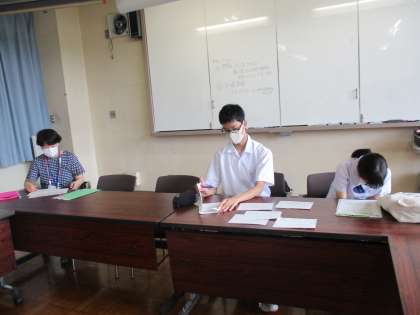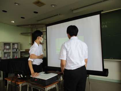 2年・働く人に学ぶ会・前日準備 公開日 2021/07/08 更新日 2021/07/08 2年生 7月8日(木) 放課後 「働く人に学ぶ会」の会場設営やプロジェクター等の前日準備を行いました。 (写真 左:流れの最終確認) (写真 右:スクリーンに画像が映るかチェック)