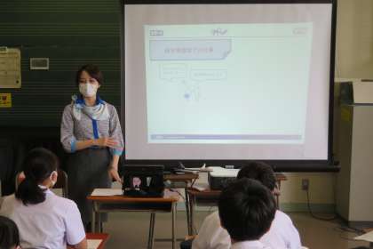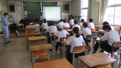 「整備士」講座は、ANA富山空港から講師をお招きして、音楽室で行いました。