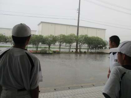 ものすごい雨ですね! 公開日 2021/07/11 更新日 2021/07/11 今日の興南中 7月11日(日) 13:00 突然、滝のような雨が降り出してきました。(写真:上) グラウンドが湖のようになりました。 練習を終えて、野球部員も雨の様子を見守っています。(写真:中) それまで降っていた雨が弱まり、西の空にぽっかりと青空が広がってきました。(写真:下) (写真 上:11:45頃 中:12:00頃 下:12:30頃)