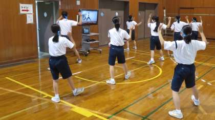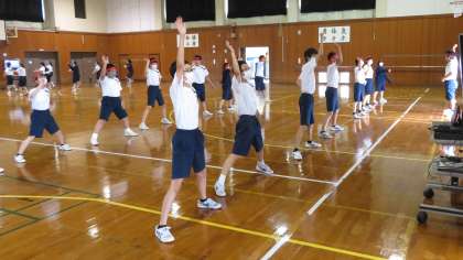2年3組、3年2組は合同体育で、南中ソーランを練習しました。