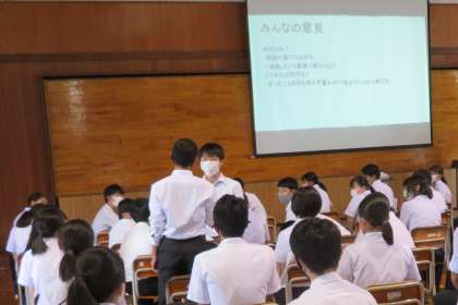 最後に、「自分を守り、仲間を尊重するとは何か」について、生徒会三役から提案が発表されました。