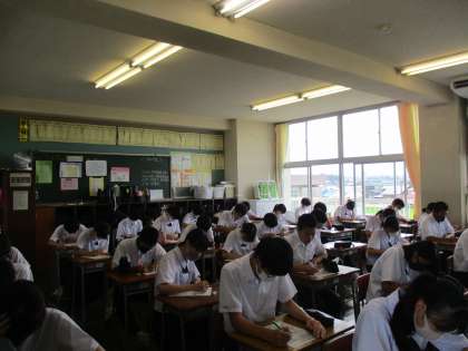 2年・学年集会 公開日 2021/07/14 更新日 2021/07/14 2年生 7月14日(水) 3限 2年生は、学年集会で、体育大会の実行委員、各団の団リーダーを選出するための演説、投票を行いました。 (写真 上:実行委員に立候補した生徒の演説の様子) (写真 中:各団リーダーに立候補した生徒の演説の様子) (写真 下:教室での投票の様子 2年1組)