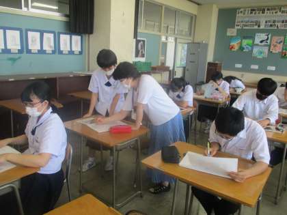 3年・授業風景 公開日 2021/07/15 更新日 2021/07/15 3年生 7月15日(木) 4限 3年生も授業を頑張って受けています。 (写真 上:3年1組 数学 2次方程式の学習) (写真 中:3年2組 美術 自画像の制作) (写真 下:3年3組 理科 進化の学習)