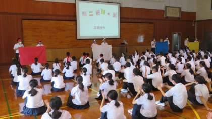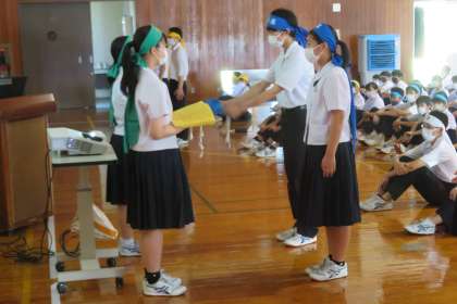 7月19日(月) 1限 実行委員長から団長、副団長に団旗が授与されました。