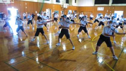 2年2組、3年3組は合同体育で、南中ソーランを練習しました。