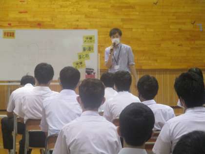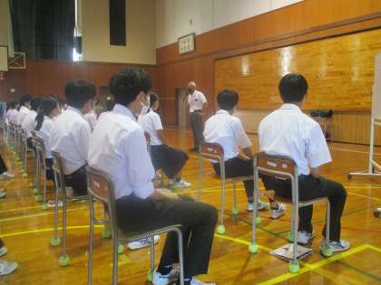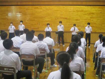 3年・学年集会・1学期のまとめ・その2 公開日 2021/07/20 更新日 2021/07/20 3年生 7月20日(水) 1限 各学級代表から1学期の成果と課題について発表しました。 最後に、夏休みの学習、生活、進路、学校行事についての話がありました。