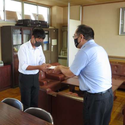 全国大会・激励会 公開日 2021/07/20 更新日 2021/07/20 今日の興南中 7月20日(火) 昼休み 先週13日(火)の昼休みに「北信越大会&全国大会・激励会」を行いましたが、今日の昼休みも第2弾を行いました。 校長先生に教育後援会、育友会からの激励金を渡していただいきました。(写真)