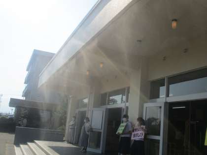 3年・1学期最終日・その2 公開日 2021/07/21 更新日 2021/07/21 3年生 7月21日(水) 7:55 校紀実践部は今朝も登校する生徒に声かけをしています。(写真:左) 生徒玄関上から、暑さ対策のミストが生徒を迎えています。(写真:右)