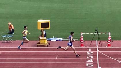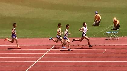 通信陸上・1日目・その2 公開日 2021/07/24 更新日 2021/07/24 今日の興南中 7月24日(土) 11:50 共通男子800m予選のようすです。 (写真 下:森本くん予選1位でゴール!)
