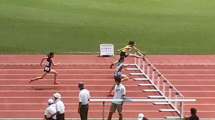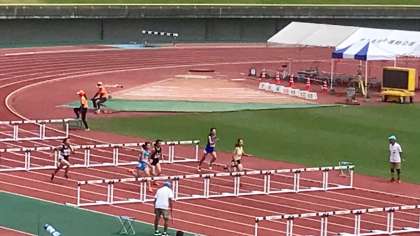 通信陸上・2日目・その3 公開日 2021/07/25 更新日 2021/07/25 今日の興南中 7月25日(日) 10:40 共通女子100Hm予選のようすです。 (写真 上:まさに夏の空が会場をつつんでいます!)