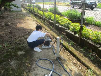 美化実践部・当番活動 公開日 2021/07/26 更新日 2021/07/26 今日の興南中 7月26日(月) 8:30 美化実践部は、交代でフラワーロードと生徒玄関のプランターの水やりを行います。 (写真:今日の担当は1年1組です)