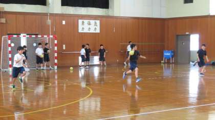 7月26日(月) 9:30 最初の体育館はハンドボール部です。