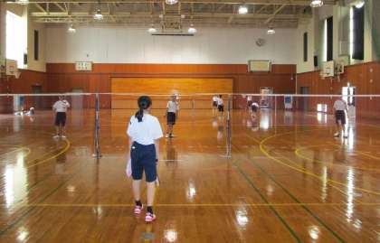 8月3日(火) 13:10 熱気で満ちた体育館でバドミントン部はがんばっています!