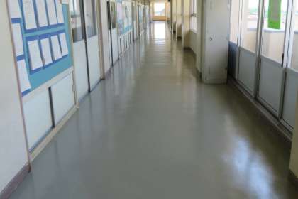 午後から業者の方に4階廊下をワックスがけしていただきました。