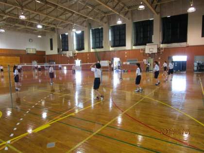 バドミントン部では顧問の声が響き渡り、その声にしっかりと反応して活動を進めています!