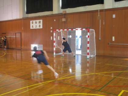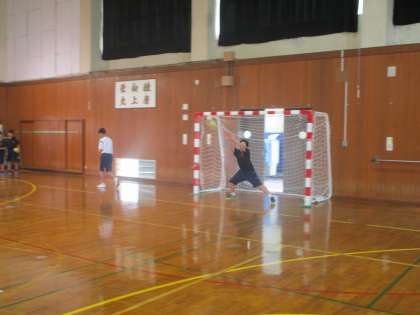 いつもより体育館は涼しく感じますが、ハンドボール部は熱気で溢れています。