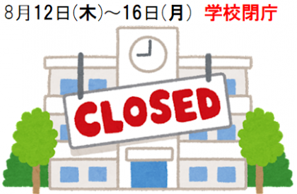明日12日(木)〜16日(月)の5日間、学校閉庁になります。