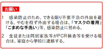 また、以下の2点について、生徒及び保護者への周知をお願いします。