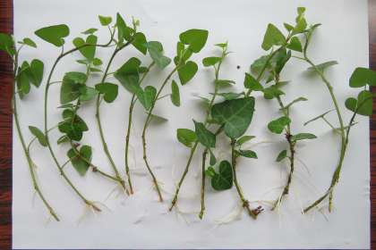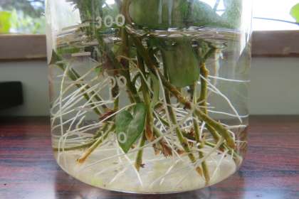 水につけた部分から、かなり発根しました。(写真:上、中)